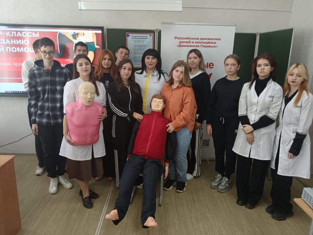 Всероссийская акция "Первая помощь" проводимая нашими активистами после показа мастер класса для школьников, продолжилась в стенах "Ливенского строительного техникума".