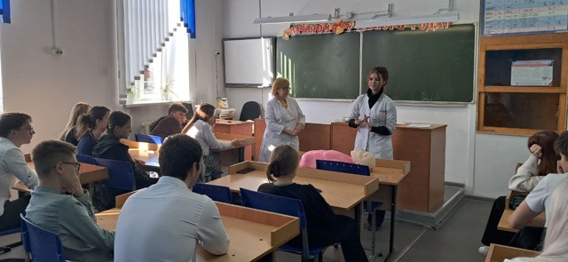 Учащимся 10-11 классов рассказали про кровотечения, различные переломы и правильной мобилизации пострадавшего.