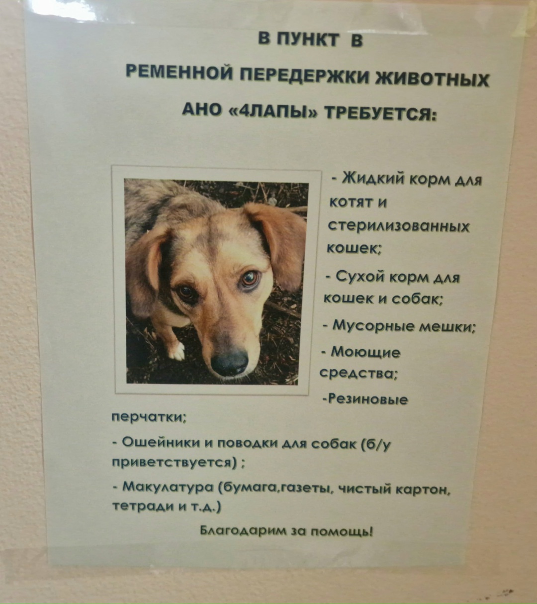 Четвероногие питомцы, проживающие в АНО "Четыре лапы" нуждаются в нашей помощи. В пункт временной переделки животных требуется: